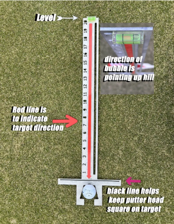 Why is our putting aid the best? It covers all the fundamentals of putting. direction, distance, pushes, pulls, putter head squareness to the target reading the greens.